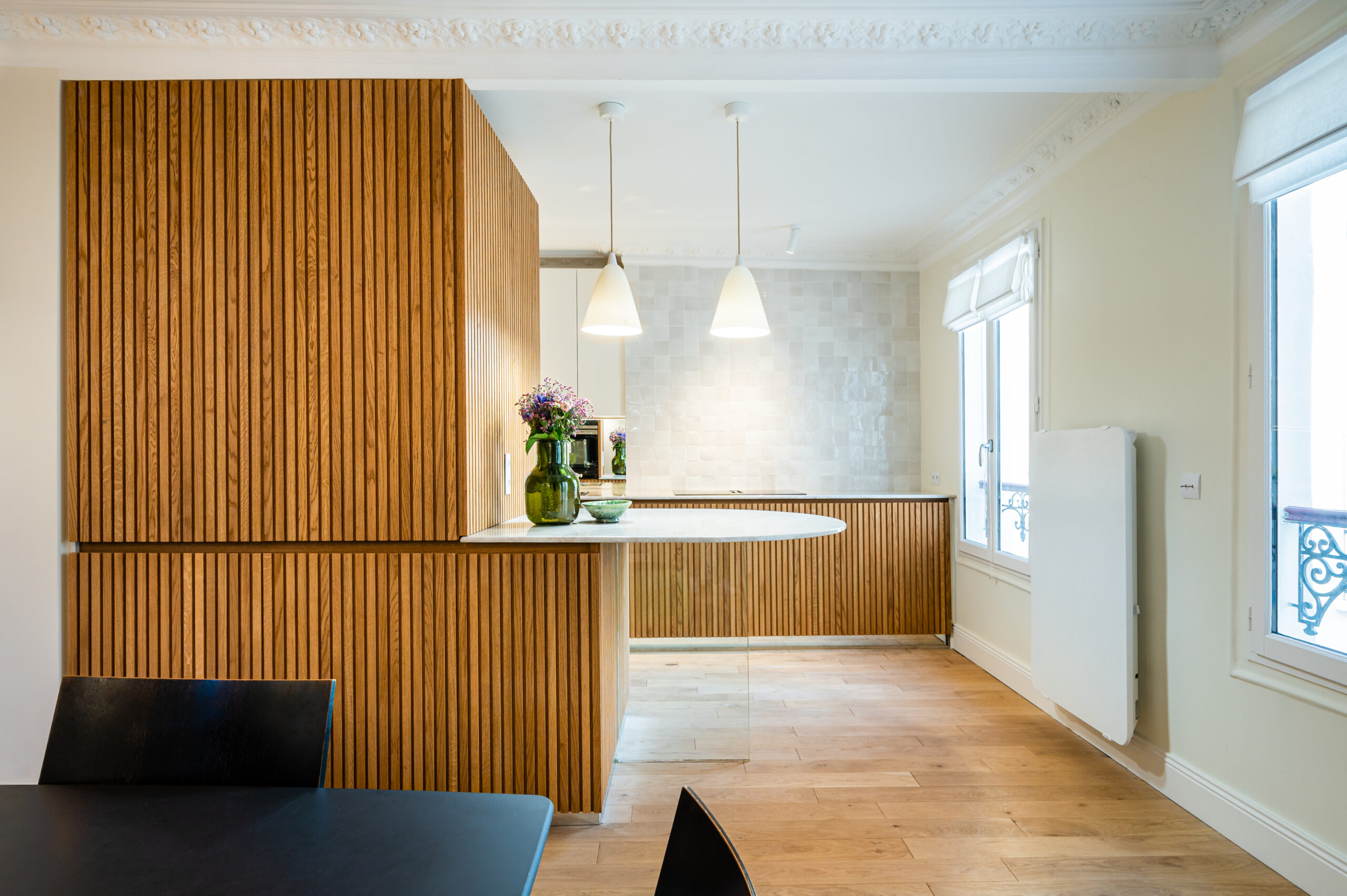 Rénovation complète – Agrandissement et redistributions des espaces d’un appartement en duplex – Etude et coordination travaux – Paris X
