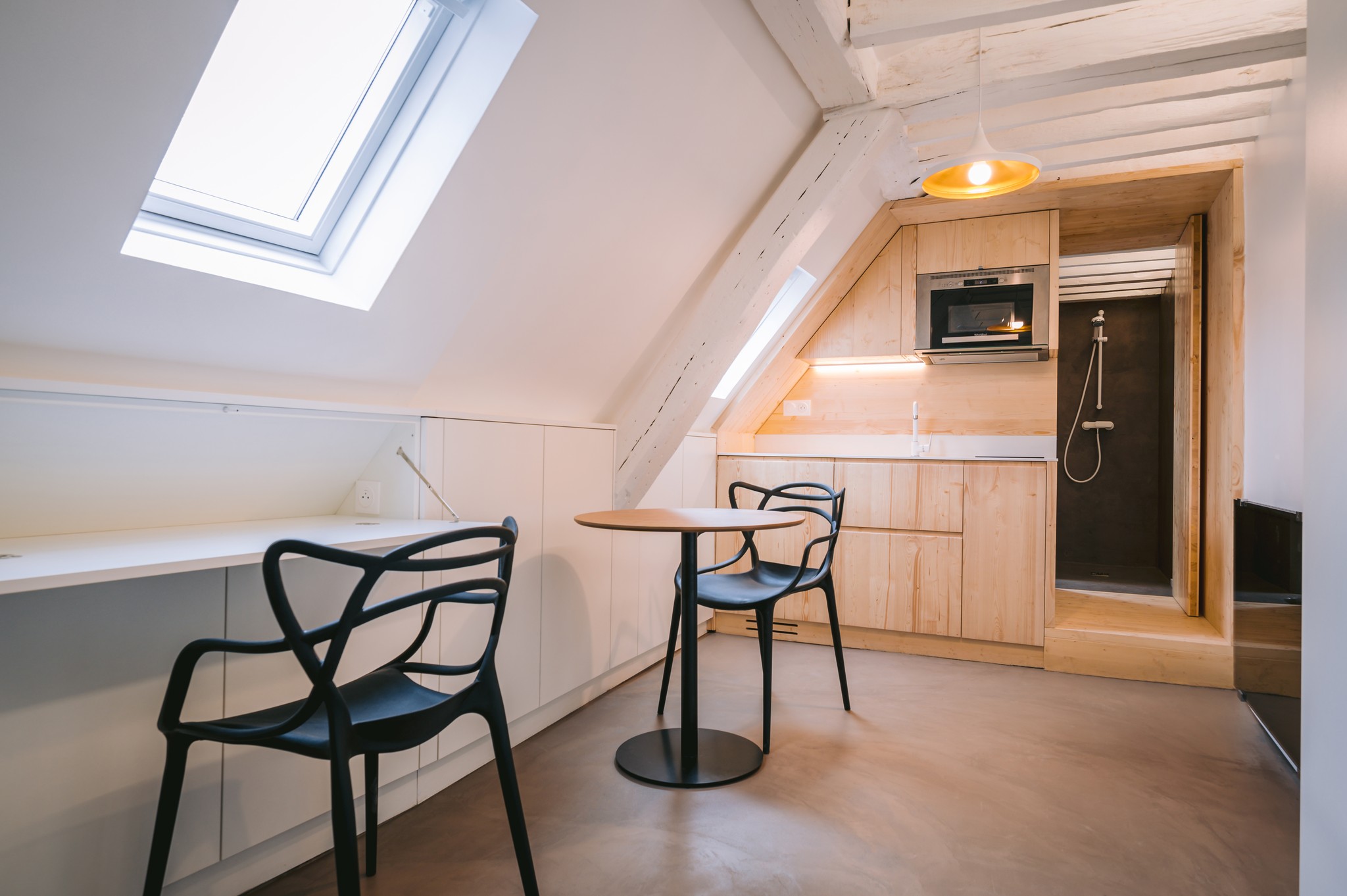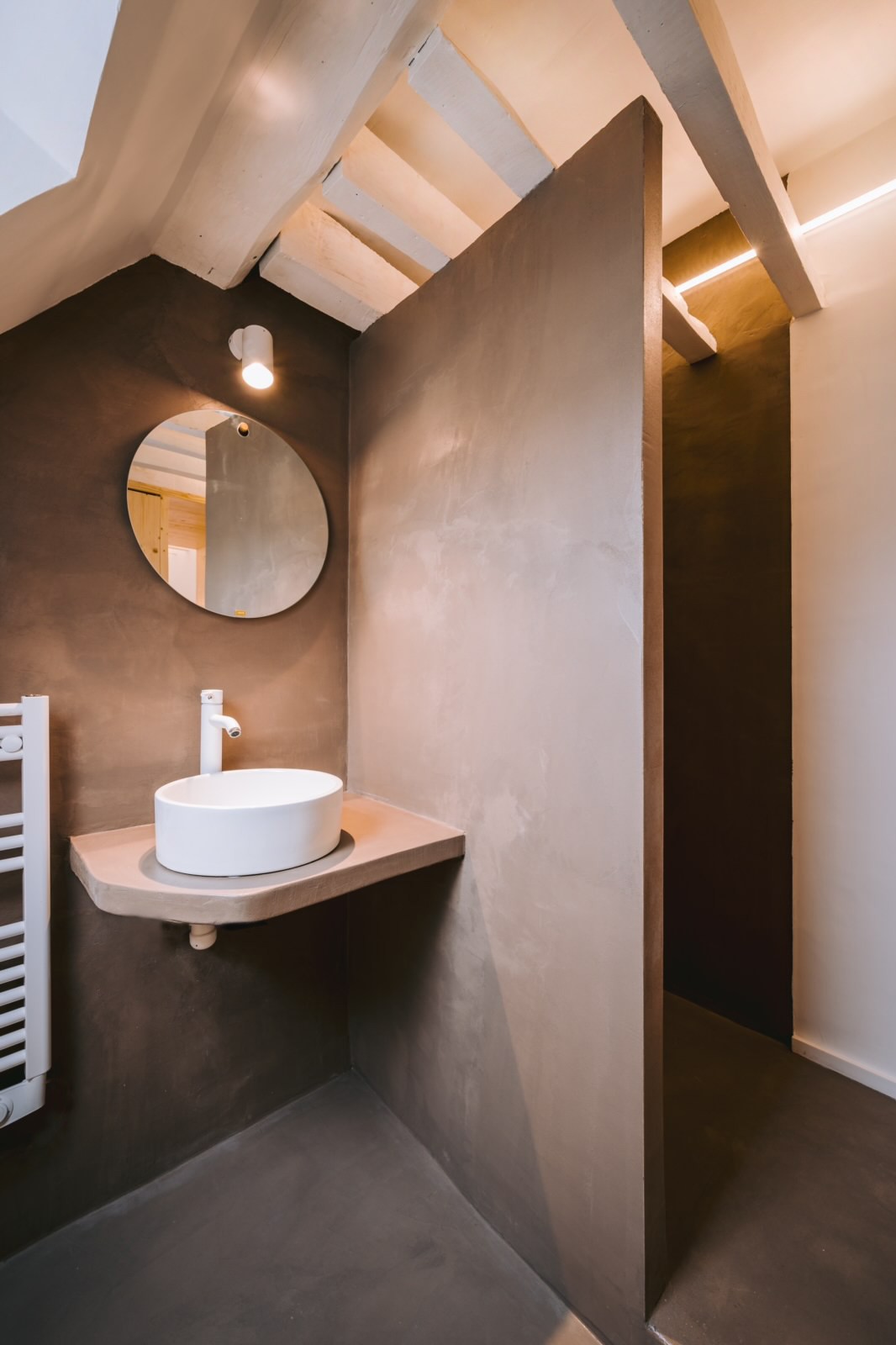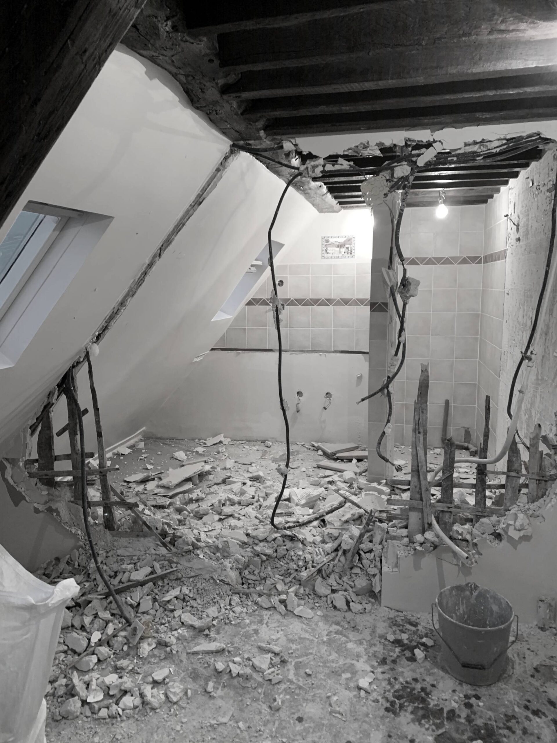 Restructuration et réunion de 3 chambres de services situées sous les toits d’un immeuble parisien – optimisation et création des espaces – architecture modulable – agencement / mobilier sur-mesure